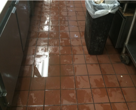 We’ve all been in a kitchen and seen standing water, but what does that mean to a contractor? We are able to immediately identify that there are underlying issues and a plethora of potential hazards. First and foremost, it allows us to identify that the kitchen does not have a proper drainage system in place. Regardless if the drains are clogged, the floor is not properly slanted to the drains or there simply are no drains at all, this boils down to a drainage or plumbing issue. As a Facility Manager, General Manager, or Director, you probably know this is a huge slip and fall hazard but here’s something you may not know. Those puddles of water, if around your food storage areas (coolers, prep station or cook line) can potentially contaminate your food. It’s no different than when you briskly walk through a puddle outside—the water splashes up. In a kitchen, the stagnate water could potentially splash onto food, opening yourself to a huge liability if anyone consuming that food gets sick. Although we typically see these puddles after we’ve cleaned the floor, the water is nowhere near sanitary. Sitting water usually doesn’t just sit. It will find its way into any crack, crevasse or grout line that is available, causing obvious rot, mold and other major issues. With all the potential hazards, it’s obvious why you should address any standing water issues.
